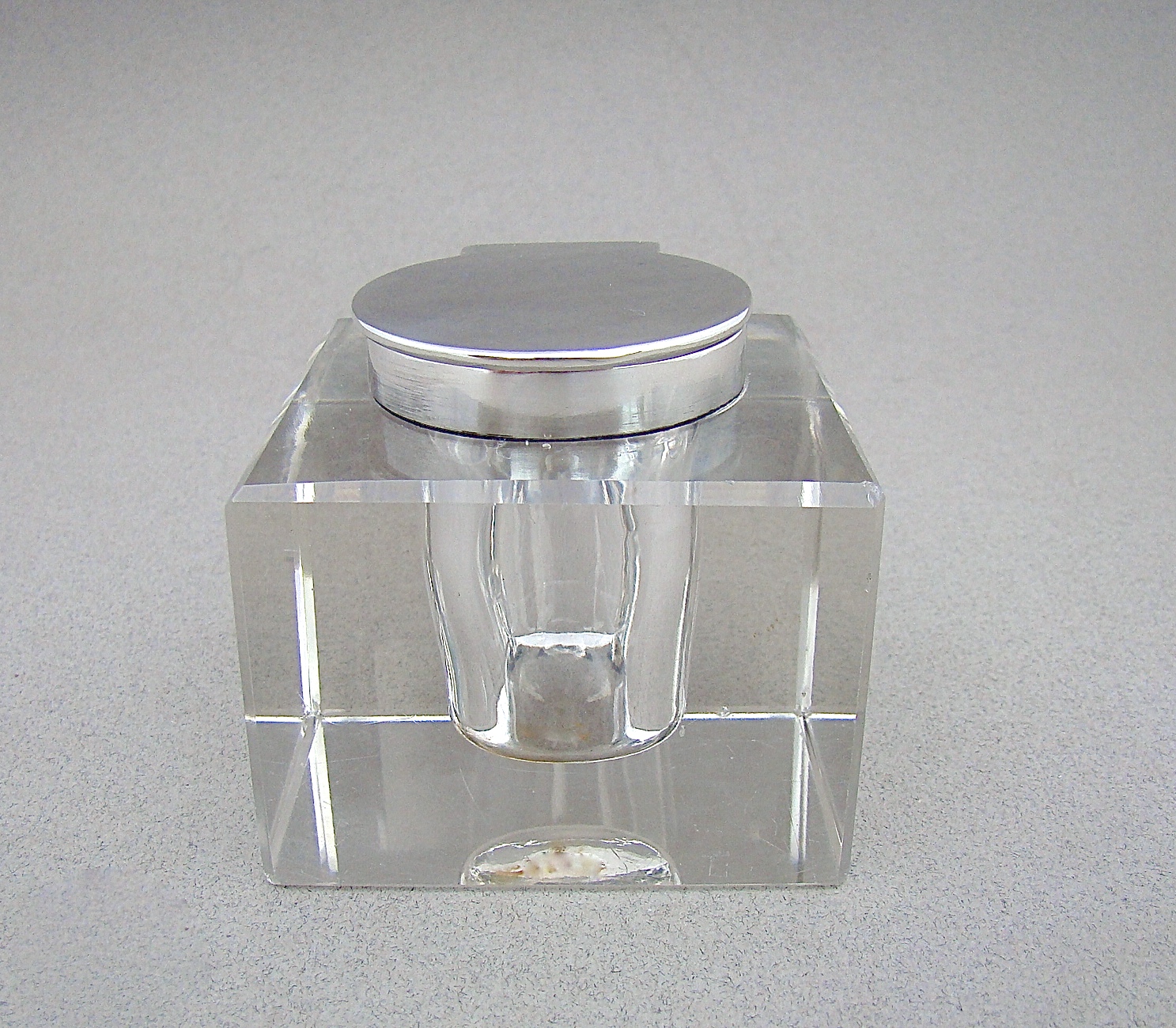 Silver Mounted Glass Inkwell by John Grinsell & Sons, Birmingham 1912