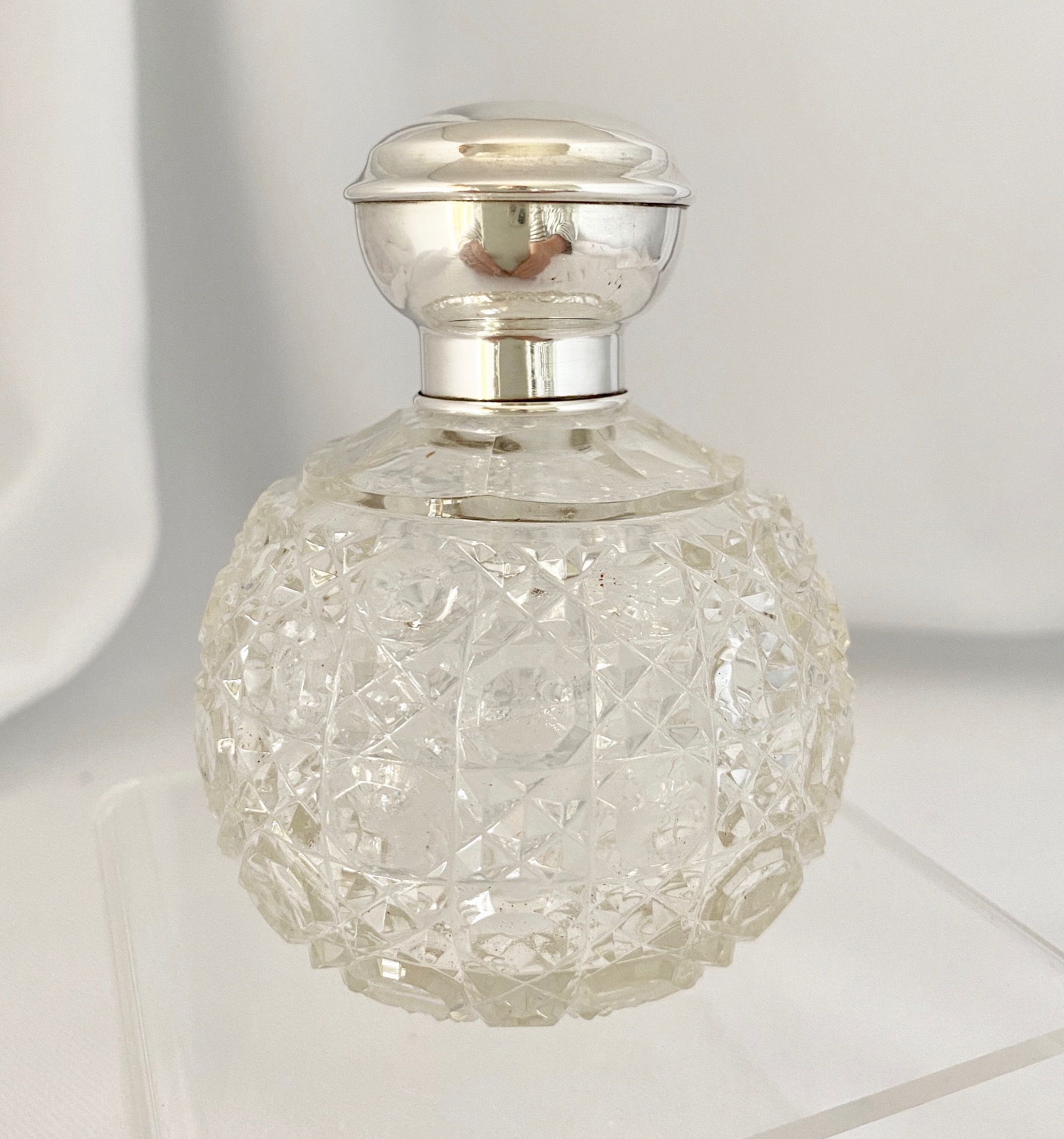 Silver Mounted Hobnail Cut Perfume Scent Bottle