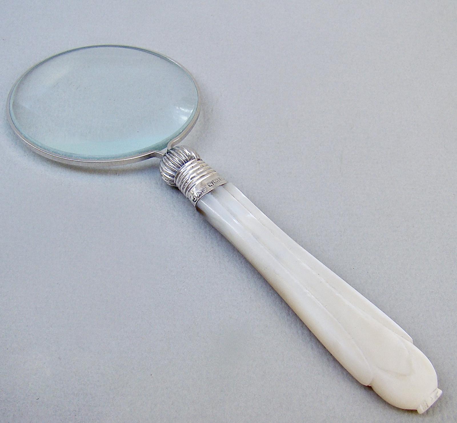 Silver Mounted Mother of Pearl Desk Magnifying Glass by James A. Scholes, Sheffield 1911