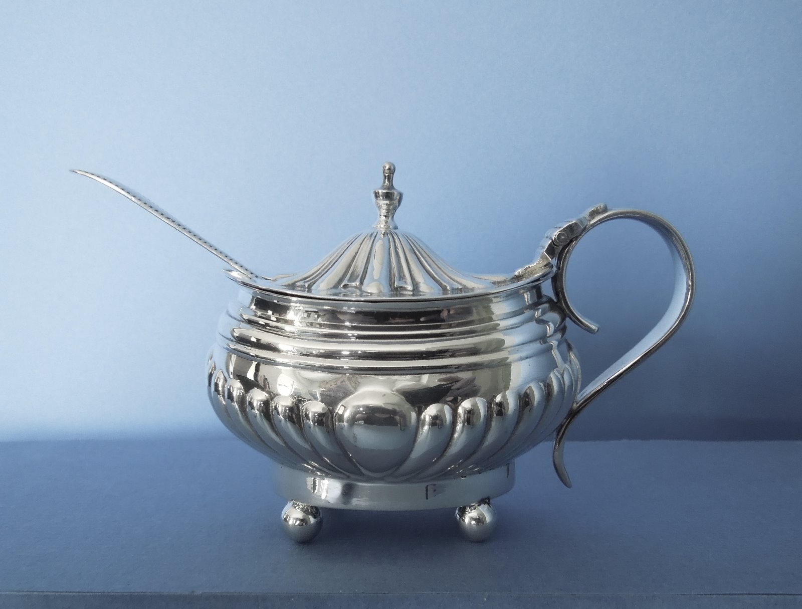 Silver Mustard Pot, London & Mustard Spoon Birmingham 1909