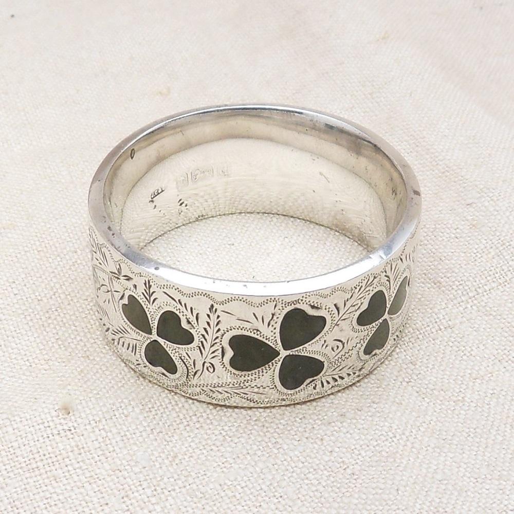 Silver Napkin Ring Inlaid Marble Shamrocks Birmingham 1903