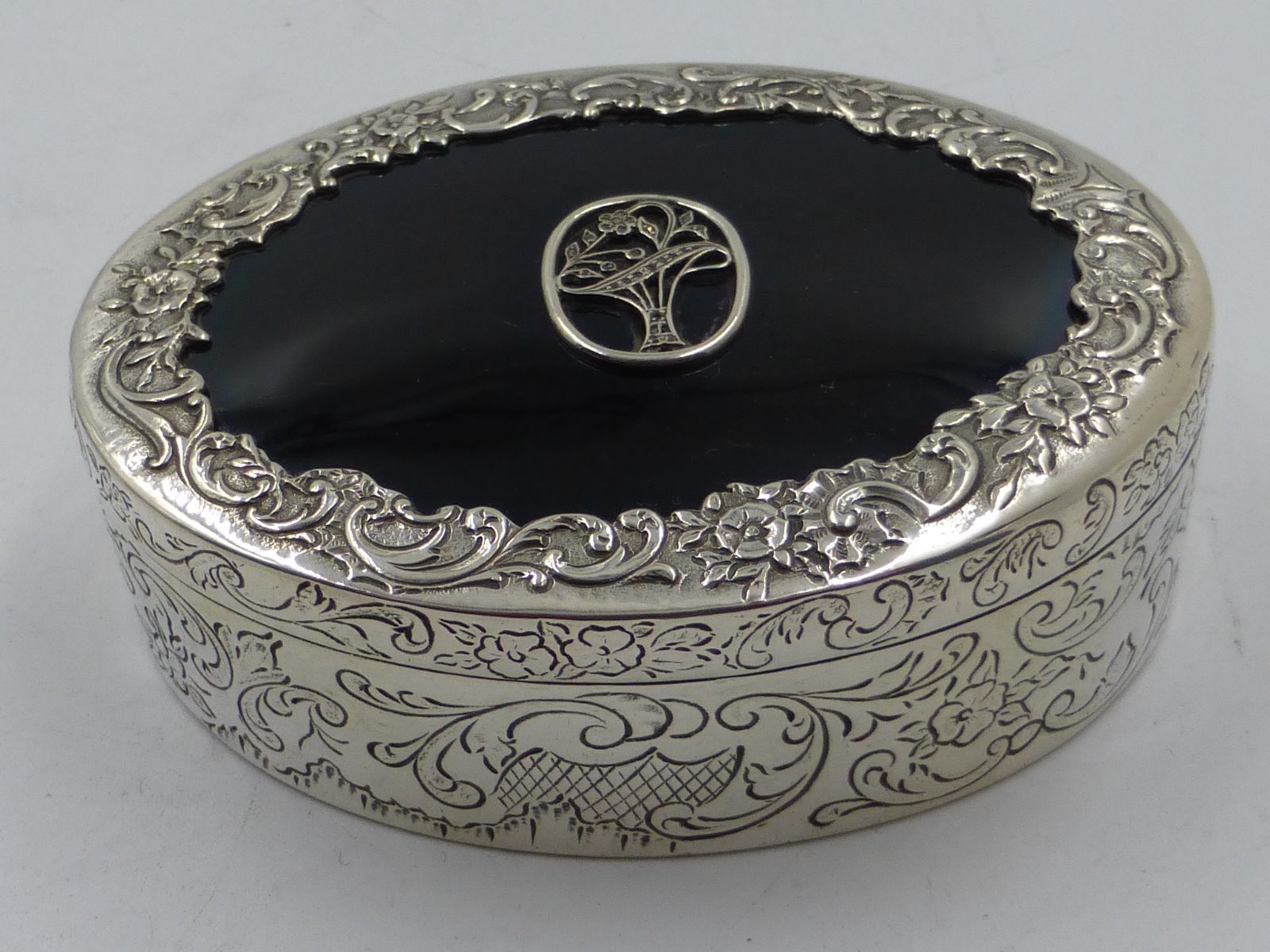 Silver & Onyx Trinket Box .800 Standard