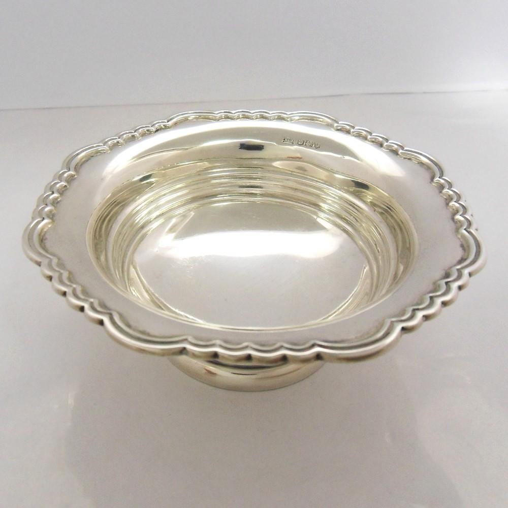 Silver Pedestal Bon Bon Dish with Scalloped Edge 1938