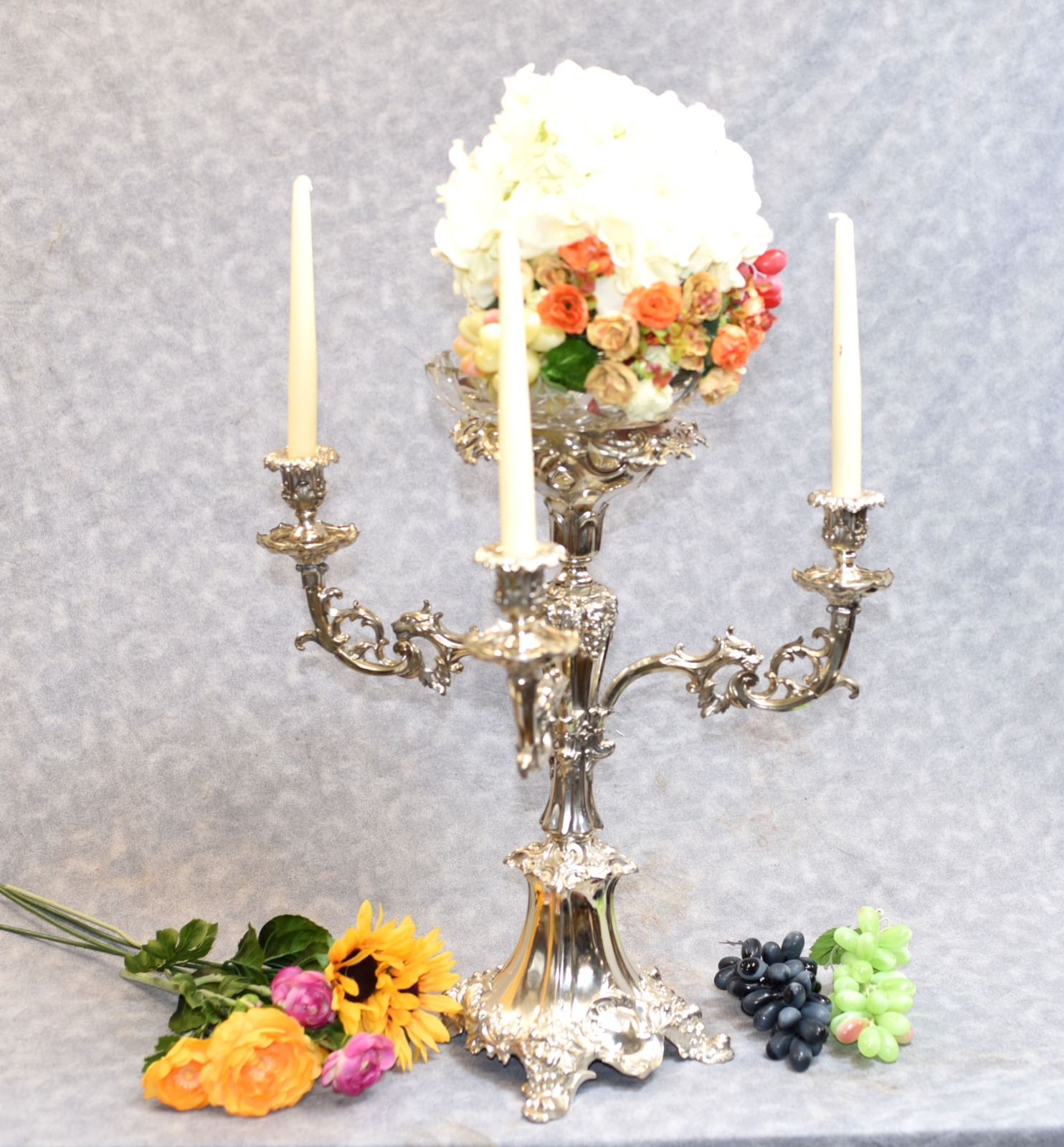 Silver Plate Centerpiece Candelabras Epergne