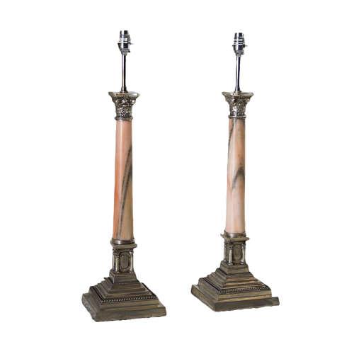 Silver Plate Pink Onyx Lamps 1900-1920
