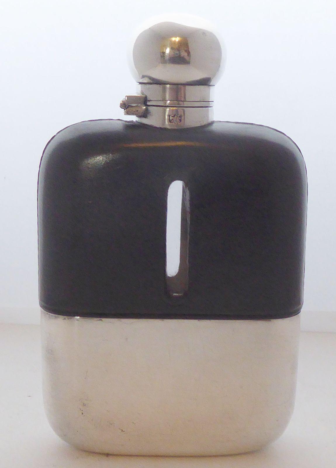 Silver Plate Plated Leather Bound Glass Hip Flask James Dixon & Sons 1/4 Pint c.1920