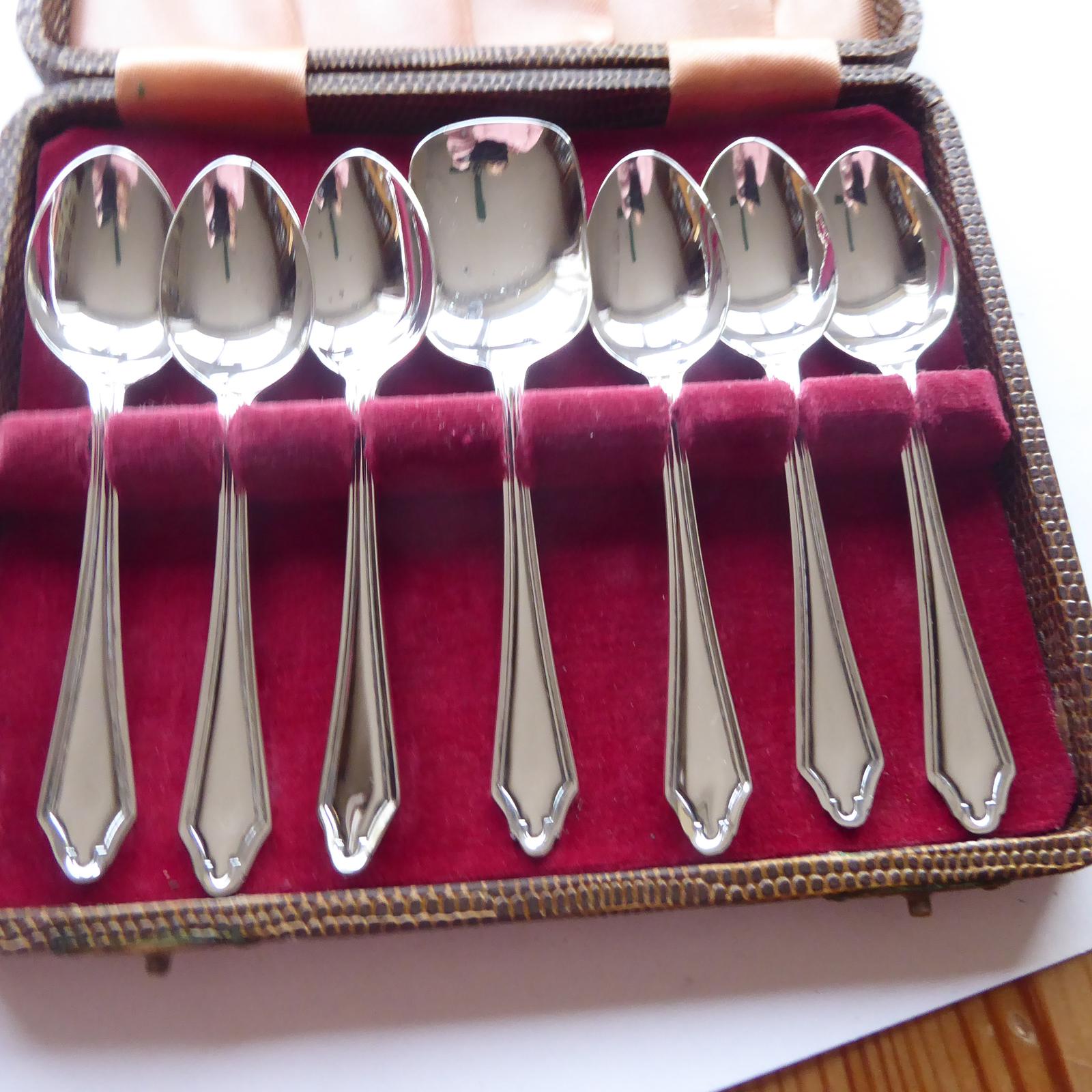 Silver Plate Teaspoons & Tea Caddy Spoon