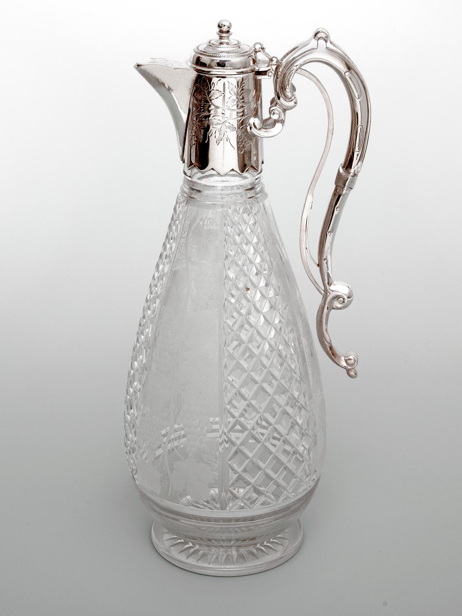 Silver Plated Claret Jug with a Spring Action Operated Hinged Lid