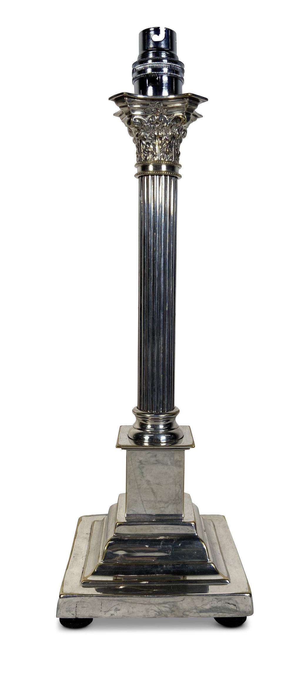 Silver Plated Corinthian Column Table Lamp