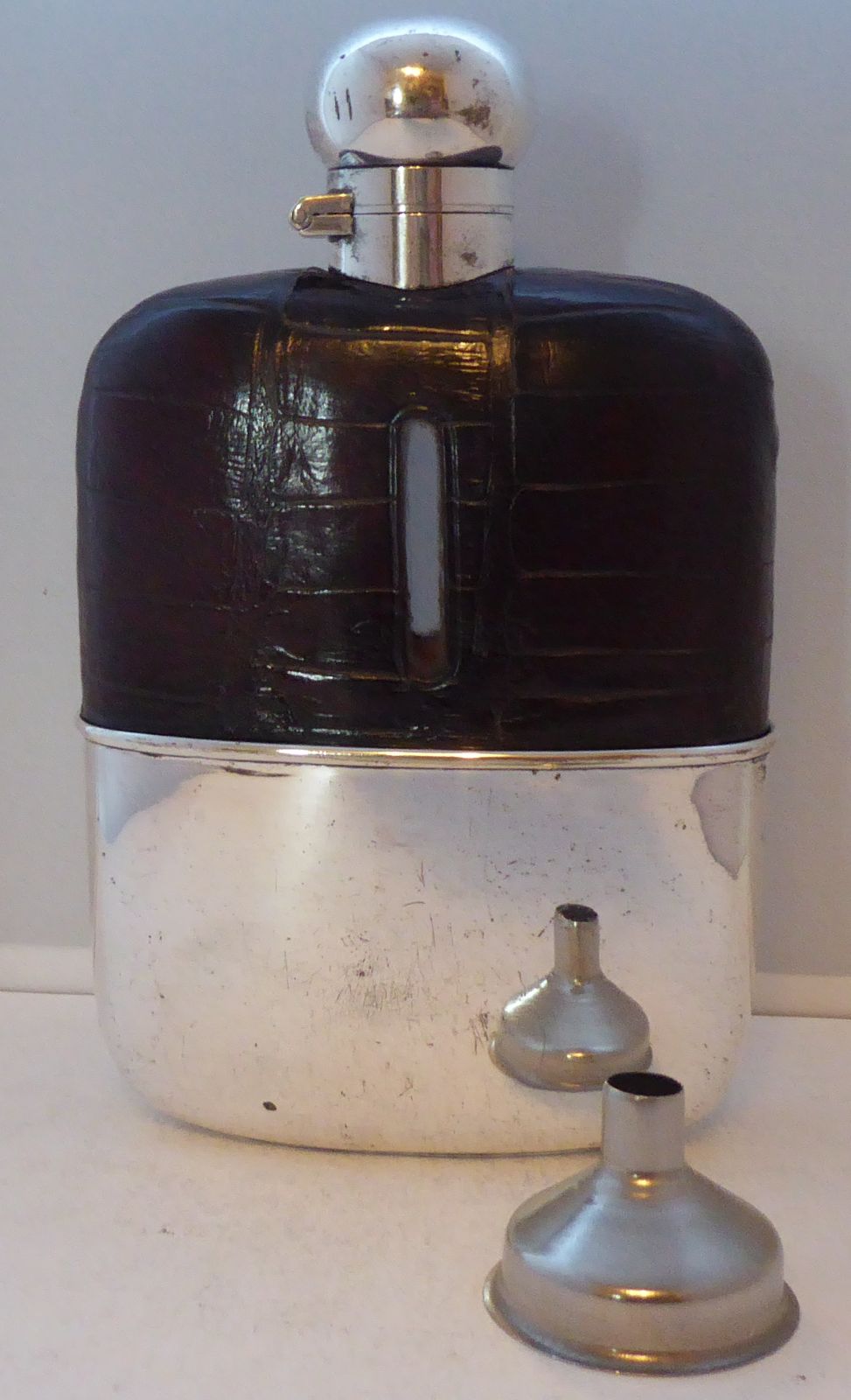 Silver Plated Crocodile Skin Bound Glass Hip Flask c.1900