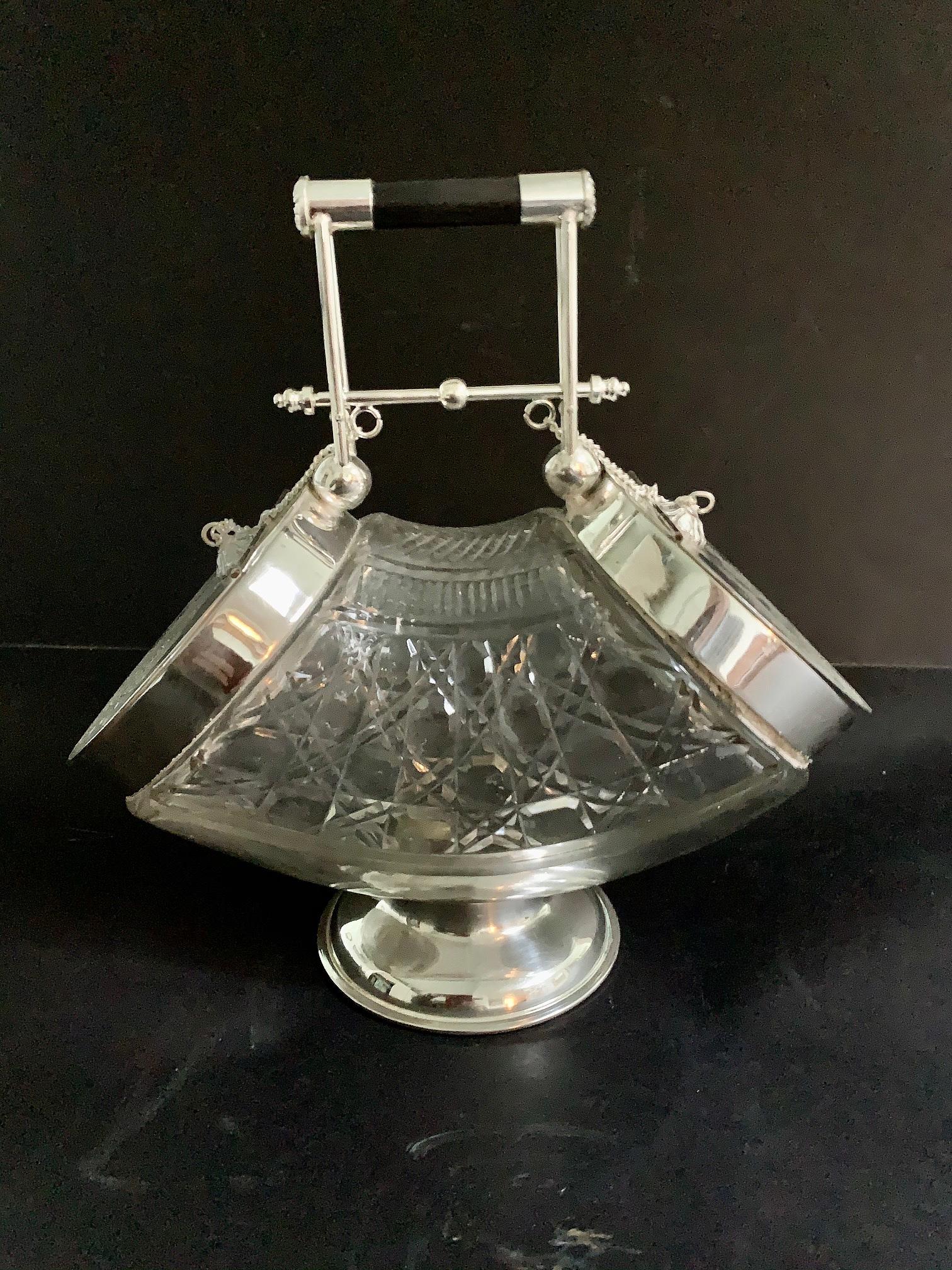 Silver Plated & Cut Glass Two Sided Biscuit Barrel
