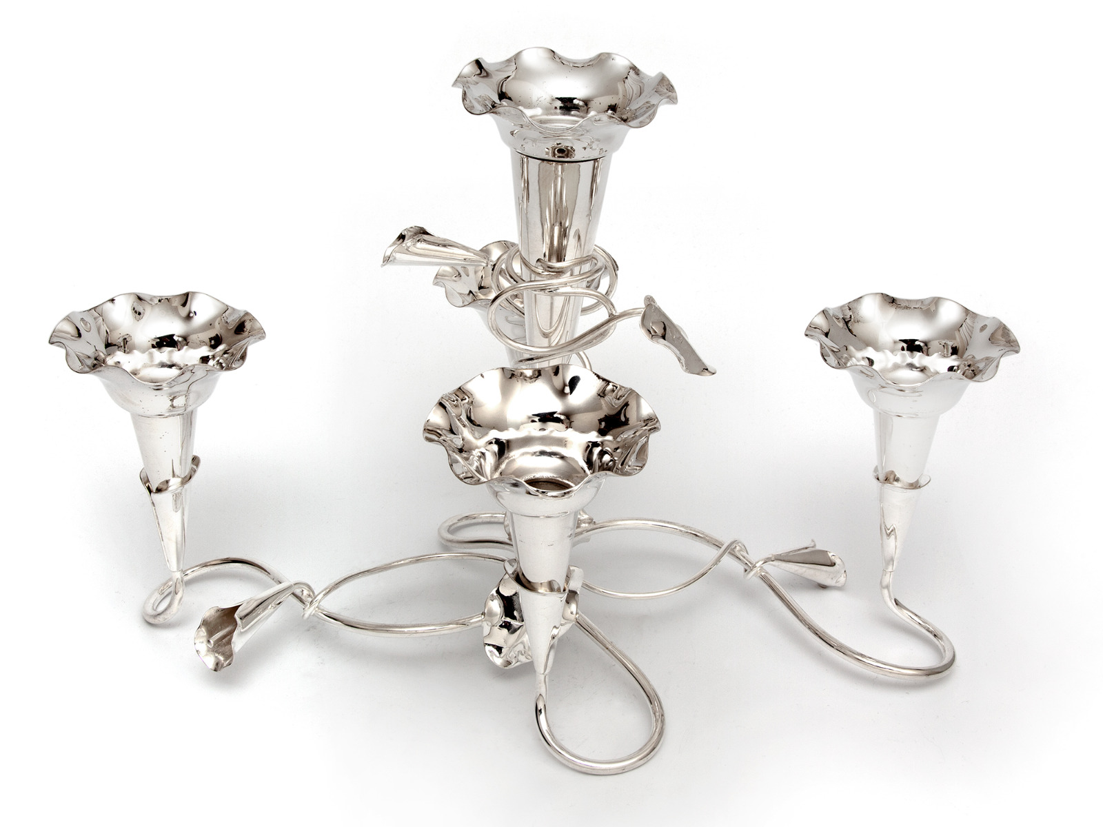 Silver Plated Floral Centerpiece with Five Detachable Trumpet Vases