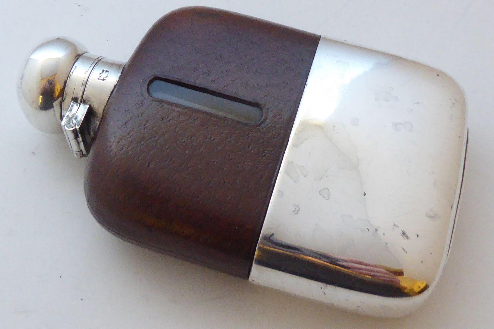 Silver Plated Pig Skin Bound Glass Hip Flask James Dixon c.1920