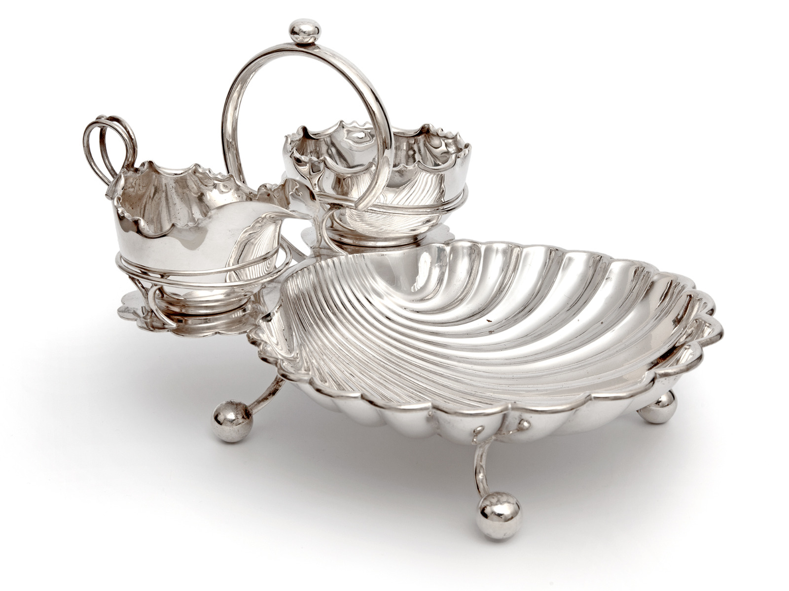 Silver Plated Scallop Shell Shaped Strawberry Stand with Sugar & Creamer (1 of 4)