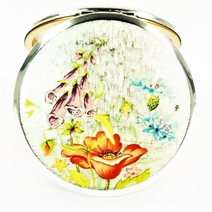 Beautiful Pastel Flower Design Compact Mirror 1970s
