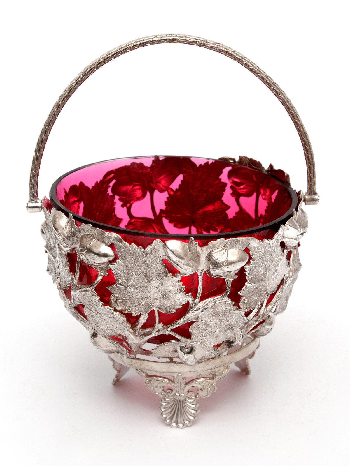 Silver Plated Sugar Basket with a Red Cranberry Glass Liner (1 of 5)