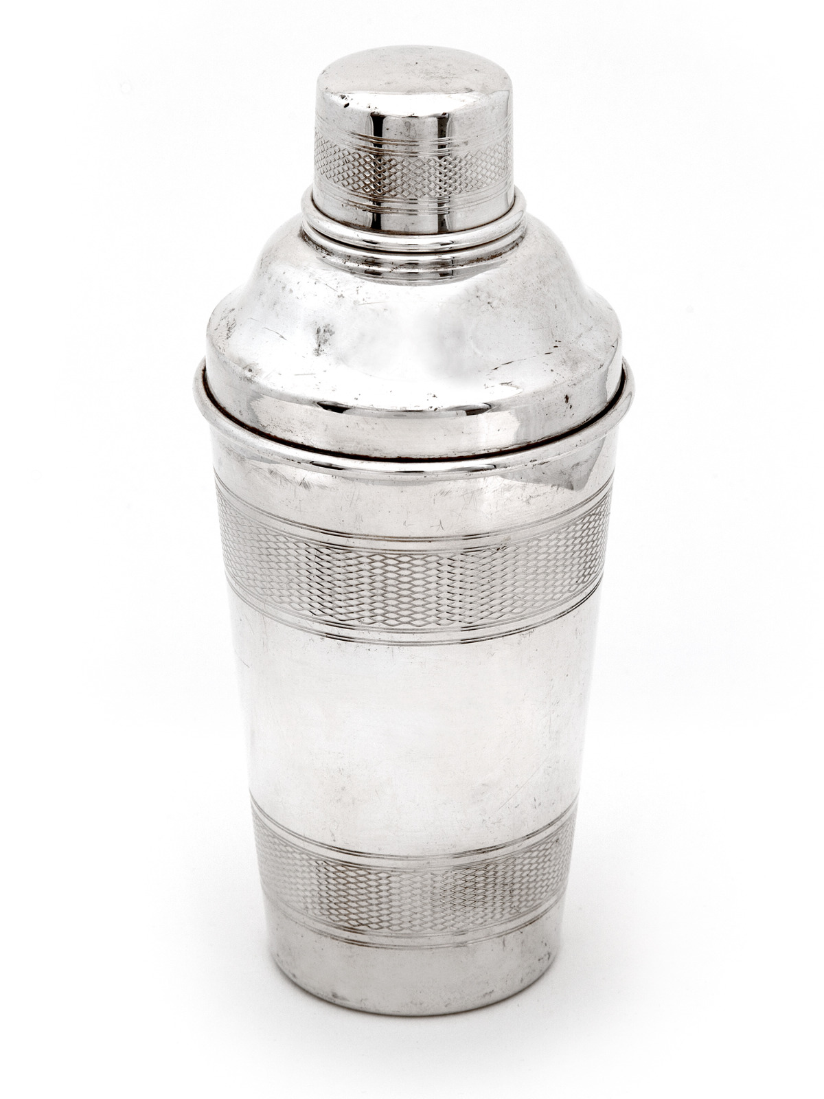 Silver Plated Three Section Cocktail Shaker with Three Engine Turned Bands (1 of 2)