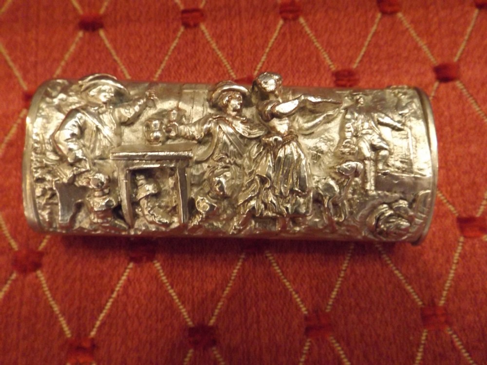 Silver Plated Vesta Case with Tavern Scene c.1890