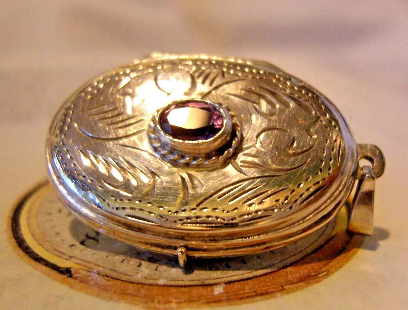 Silver Pocket Watch Chain Photo Fob 1920s Antique Amethyst Glass Fob