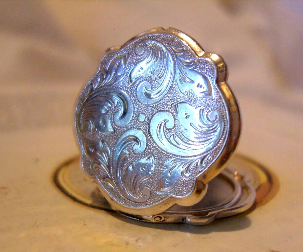 Silver Pocket Watch Chain Photo Fob 1960s Large Ornate Vintage German Fob