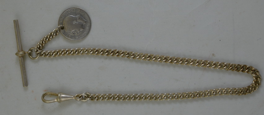 Silver Pocket Watch Chain with 1922 Sixpence (1 of 1)