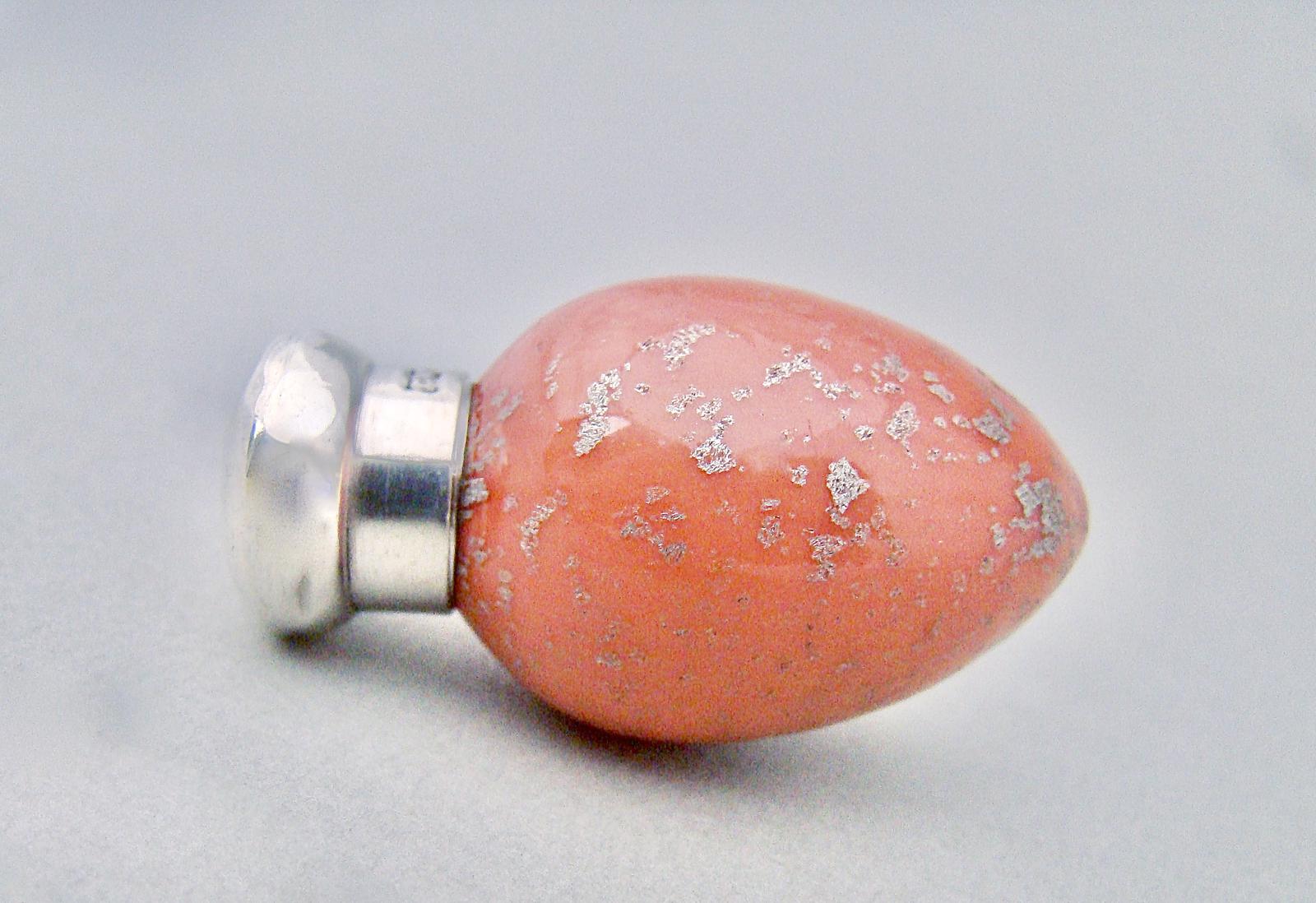 Silver & porcelain speckled egg scent bottle by Charles May, Birmingham 1876