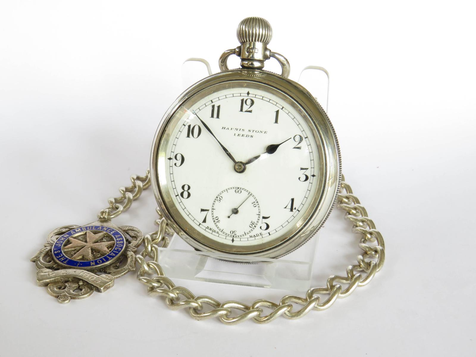 Silver Record Dreadnought ‘Trenton’ Pocket Watch & Chain