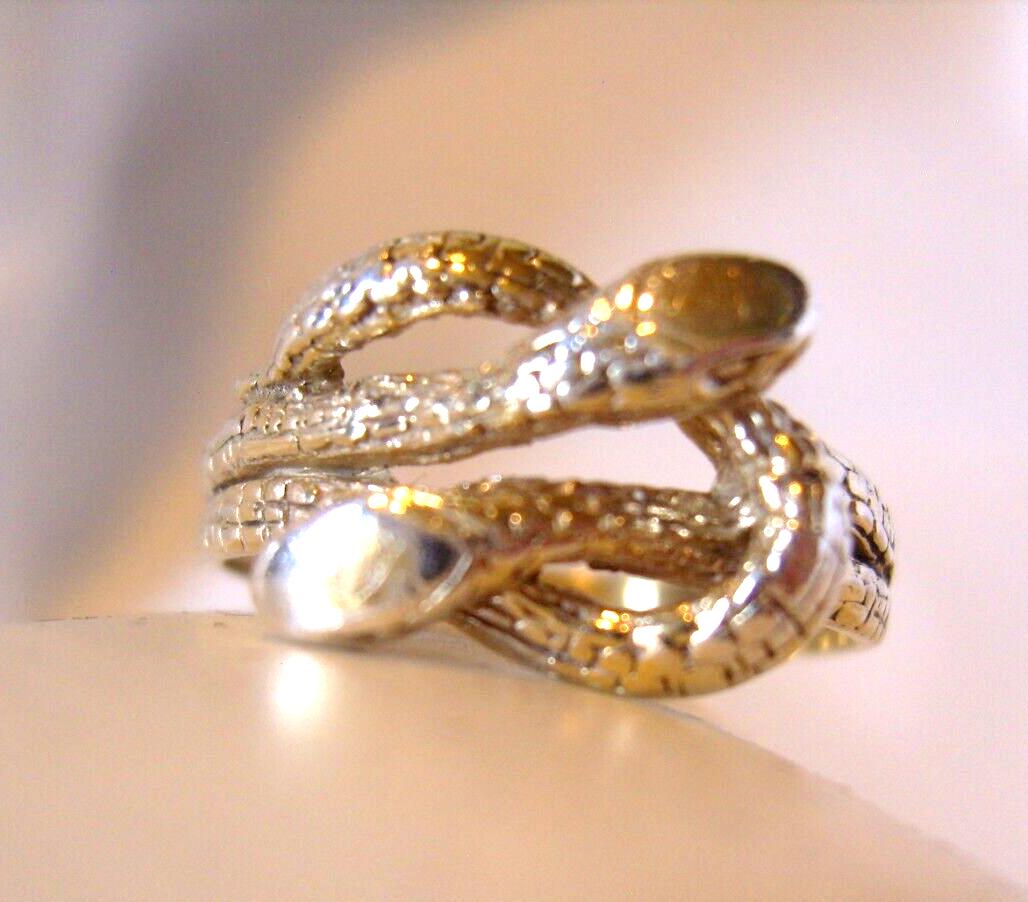 Silver Ring Twin Snakes Vintage 1970s (UK Size R 1/2 USA 8 3/4)
