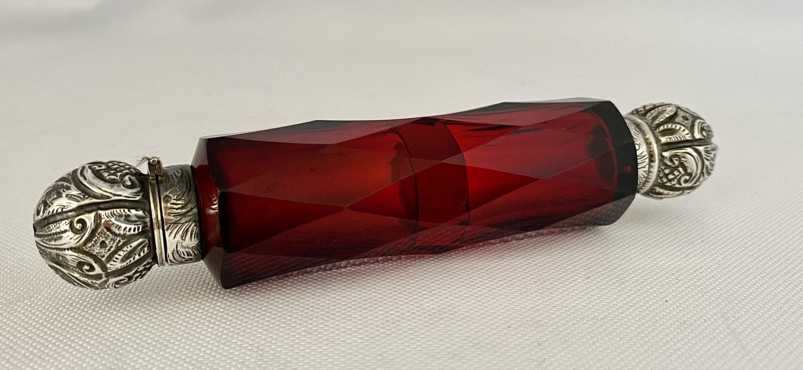 Silver & Ruby Double Ended Scent Perfume Bottle c.1900