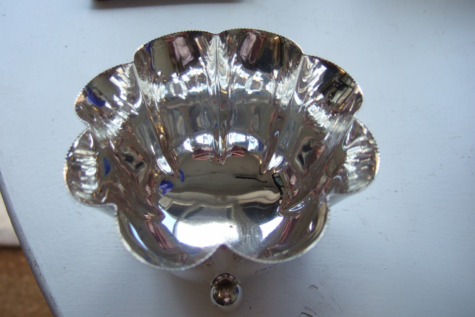 Silver Scalloped Bowl on 4 Ball Supports 1903 (1 of 1)
