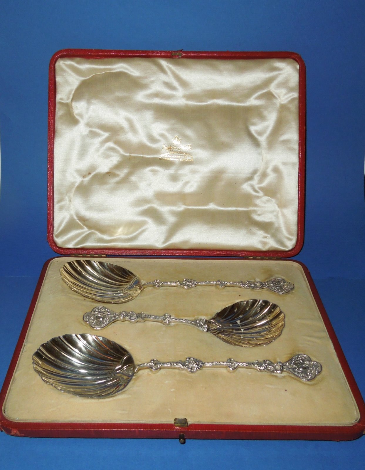 Silver Set of 3 Fruit Serving Spoons, Mappin & Webb London 1900