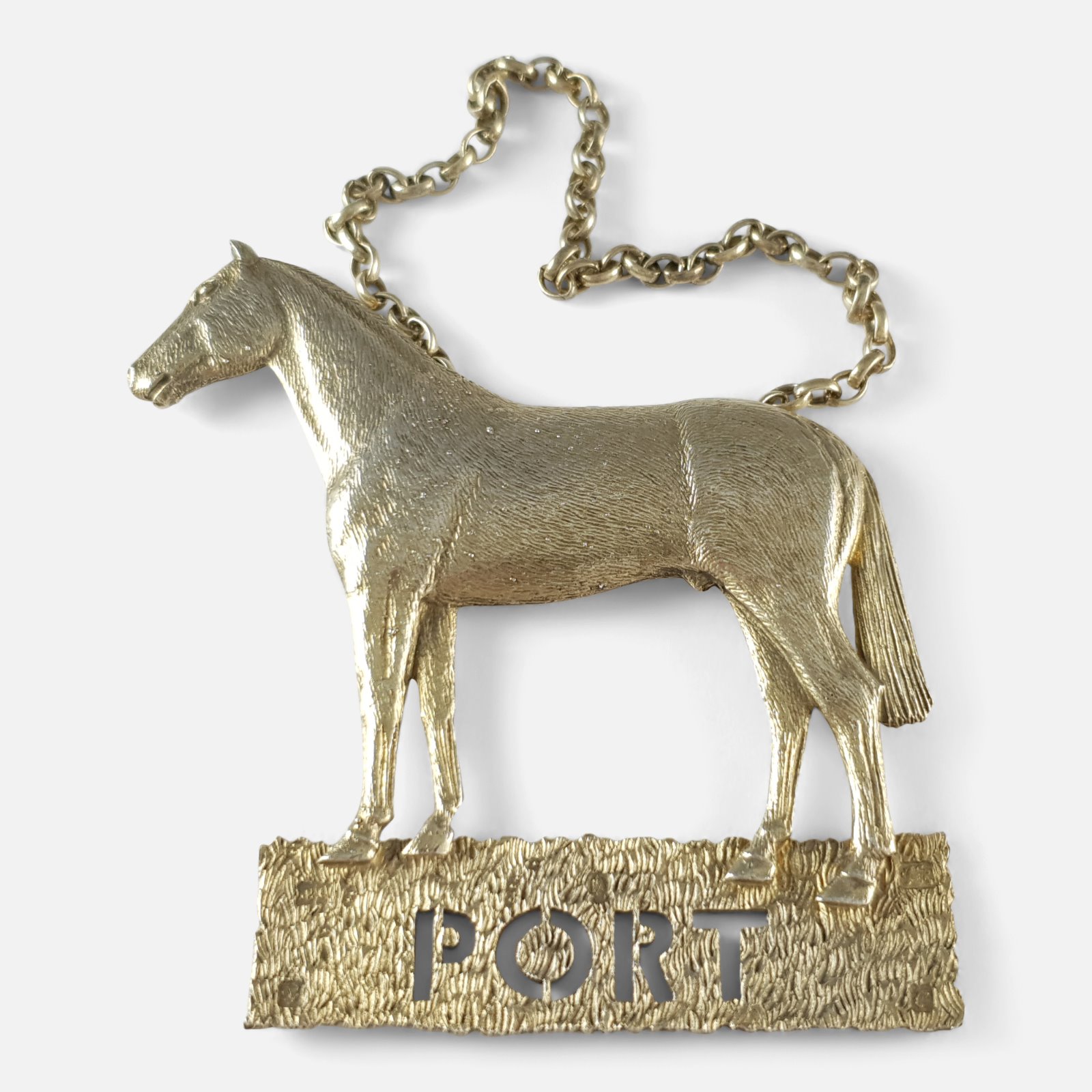 Silver Standing Horse 'Port' Wine Decanter Label John Henry Odell London 1975