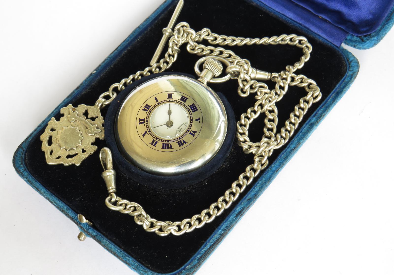 Silver Stauffer Half Hunter Pocket Watch & Chain