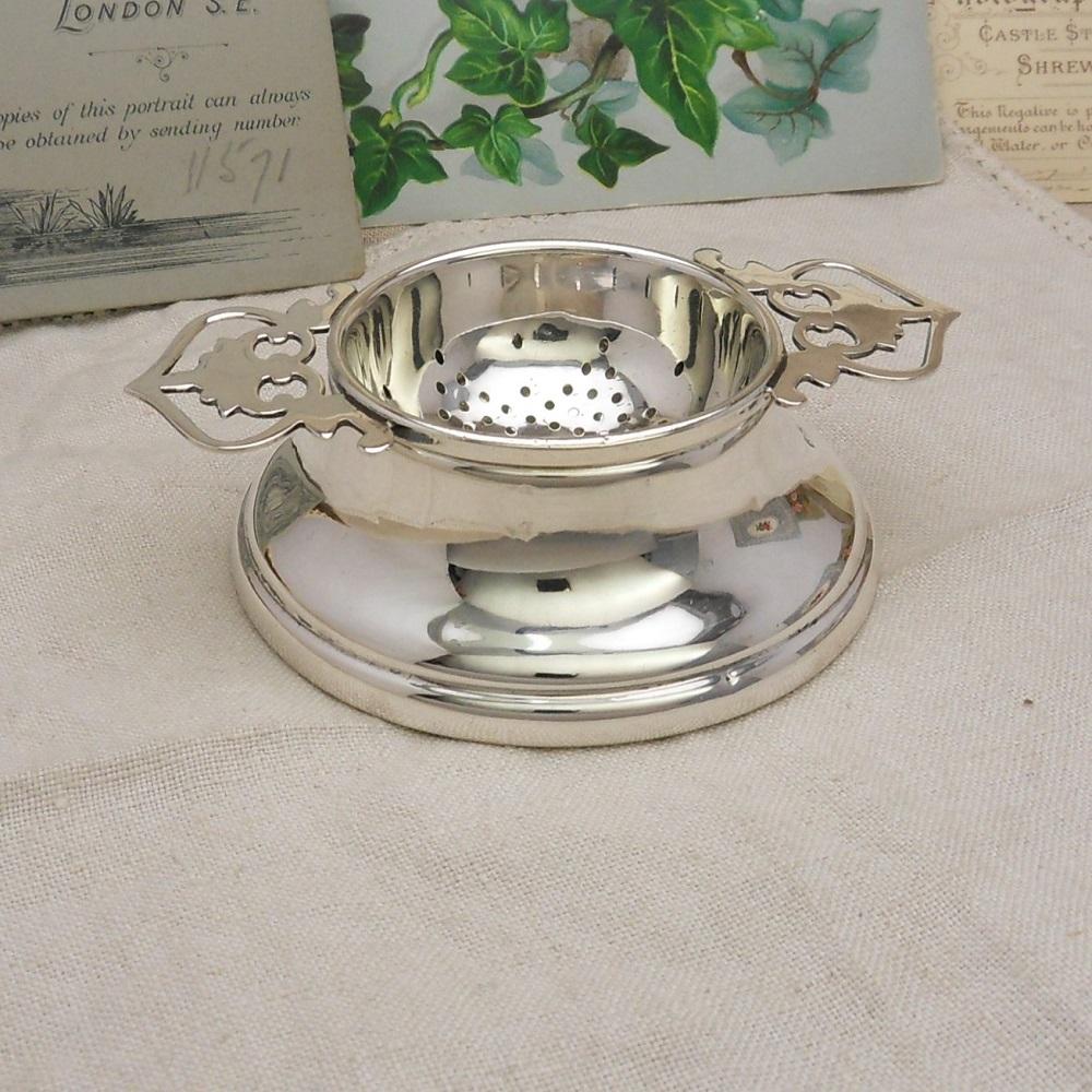 Silver Tea Strainer with Bowl Birmingham 1958/1959 Lanson Ltd