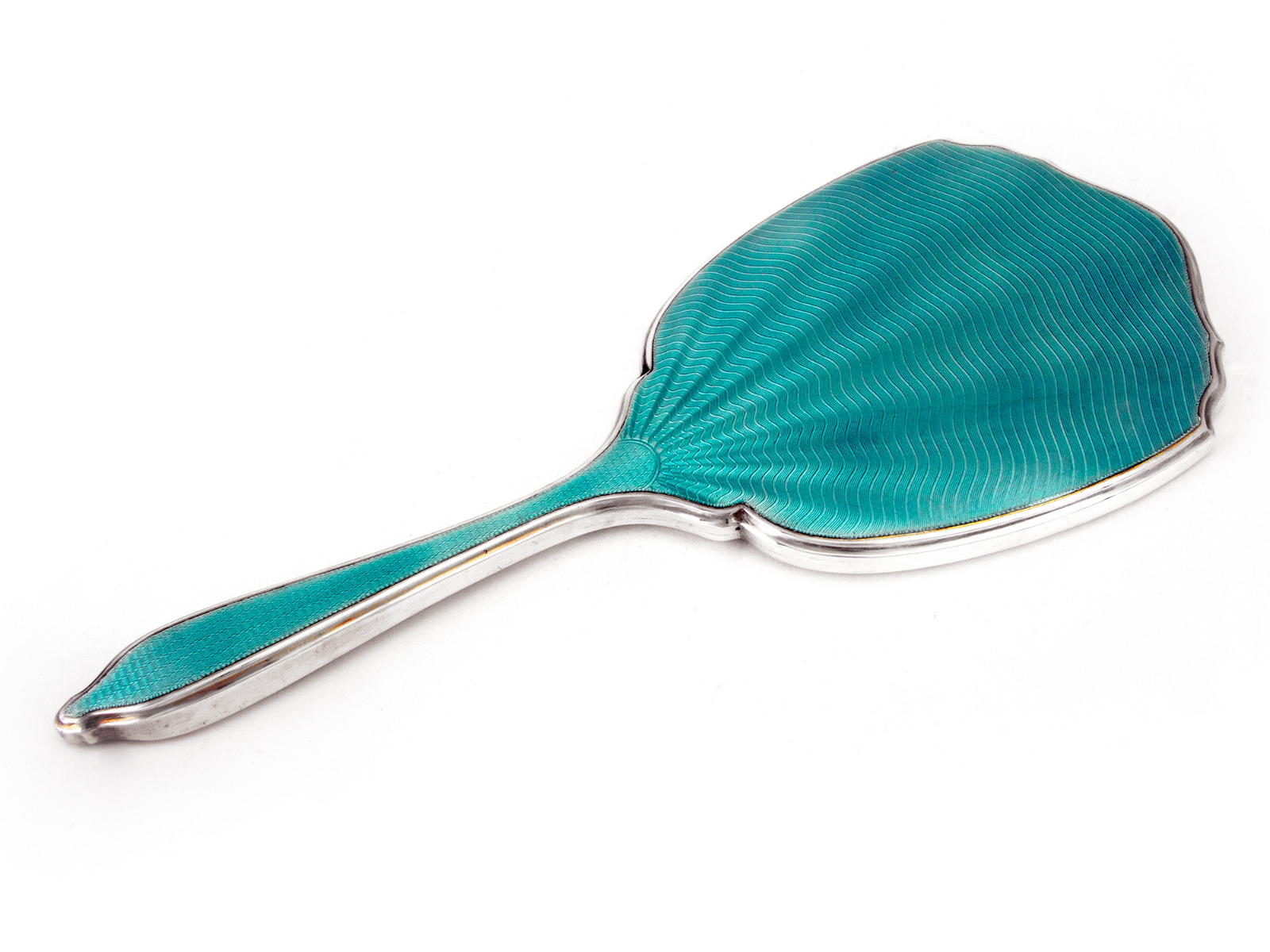 Silver & Teal Green Enamel Hand Mirror (1 of 1)