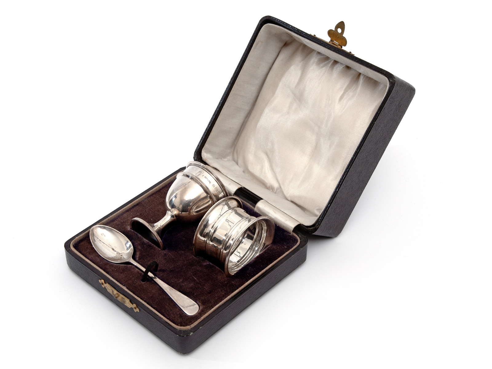 Silver Three Piece Christening Set in a Plain Simple Design (1 of 5)