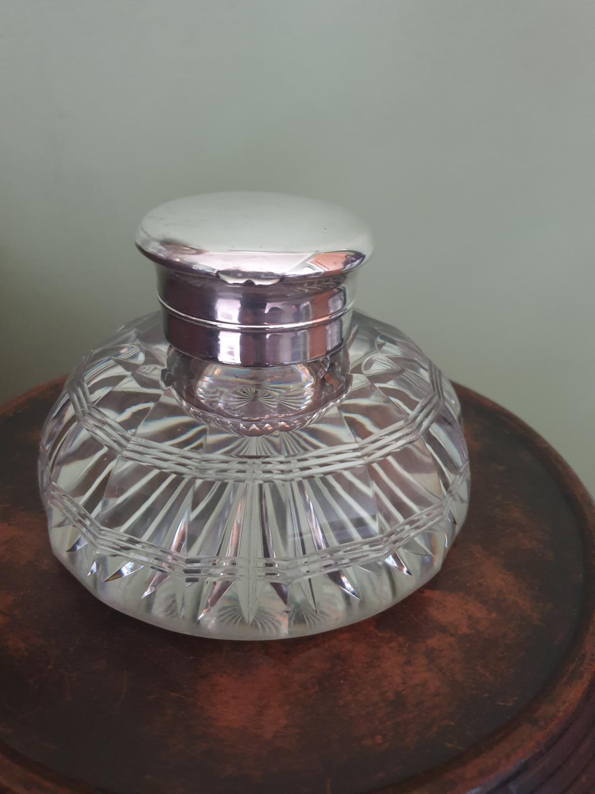 Silver-top Cut Glass Inkwell, Hallmarked Sheffield 1900