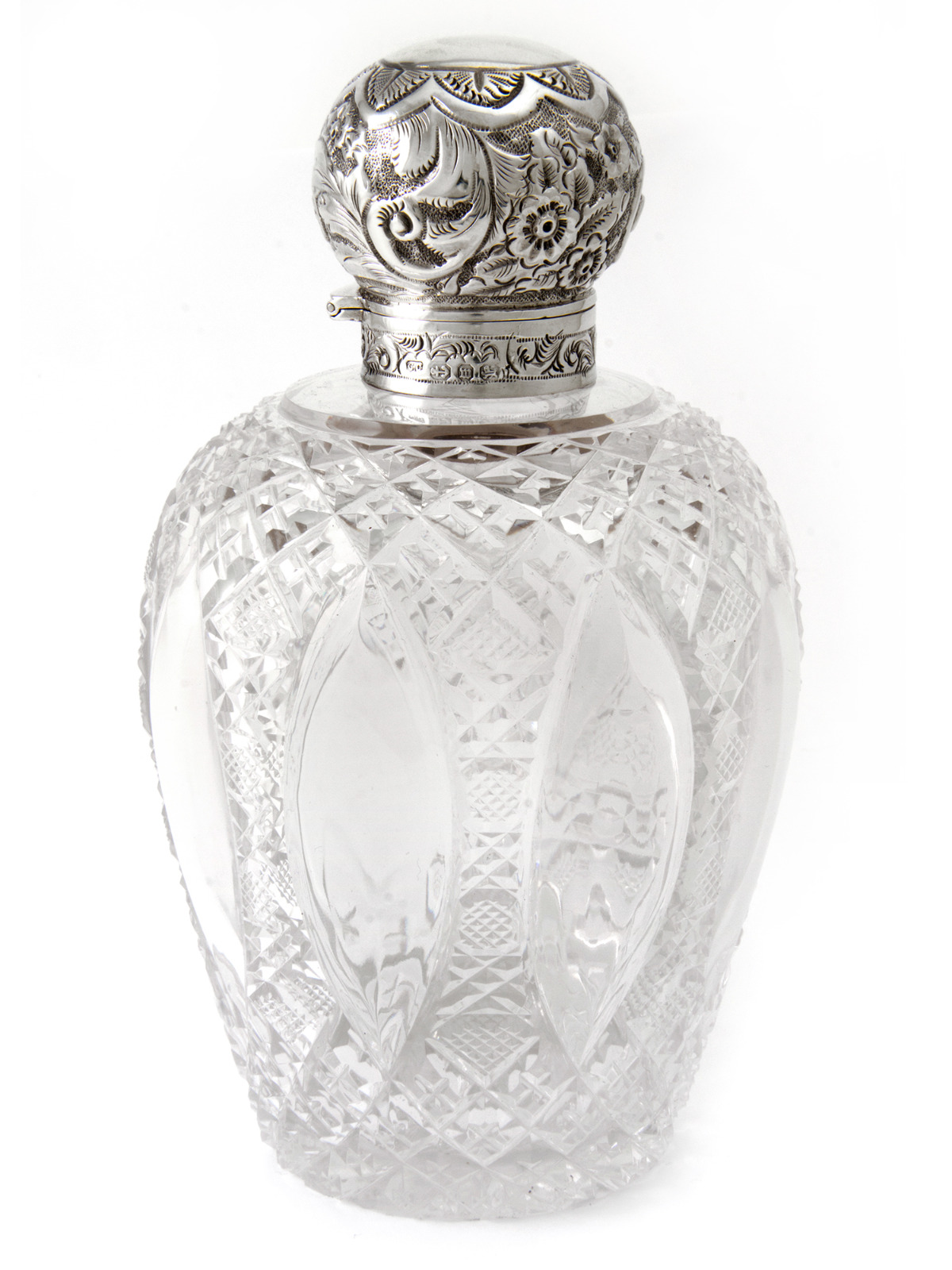 Silver Topped & Cut Glass Perfume Bottle with Original Stopper
