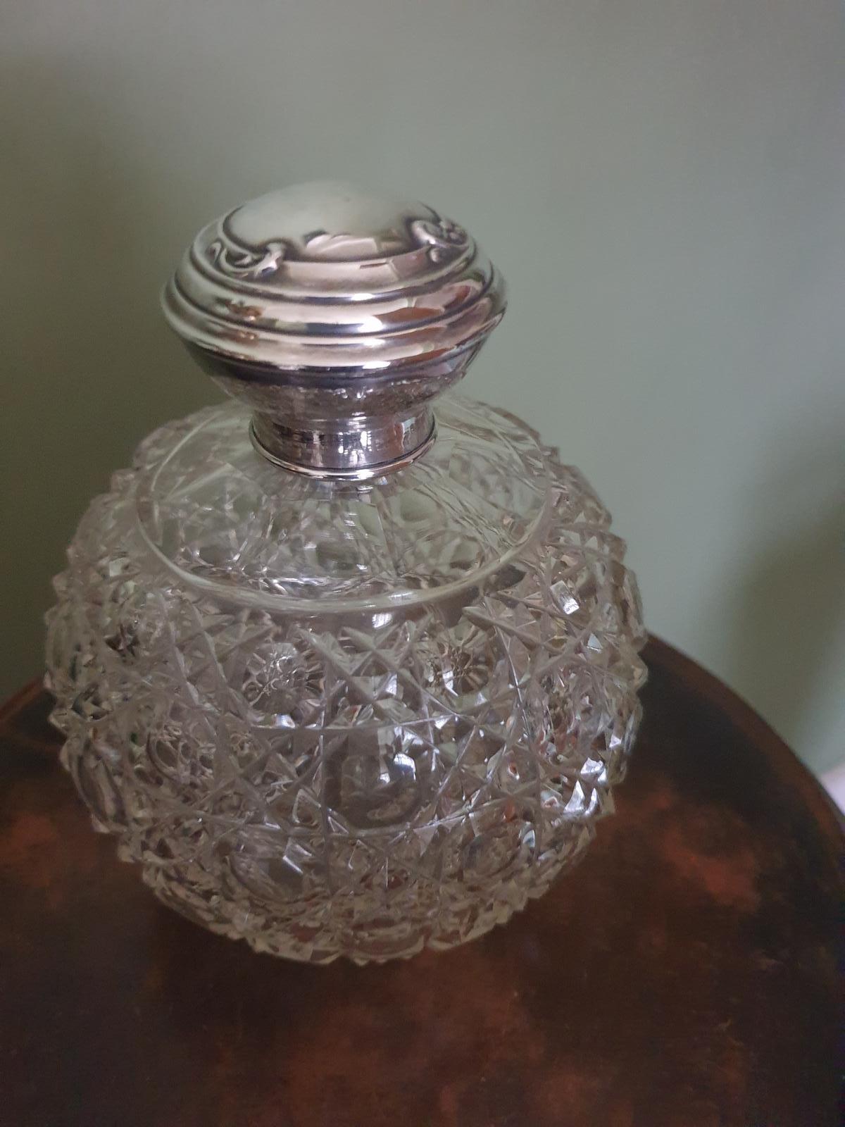 Silver-topped Cut Glass Scent Bottle - Birmingham 1918