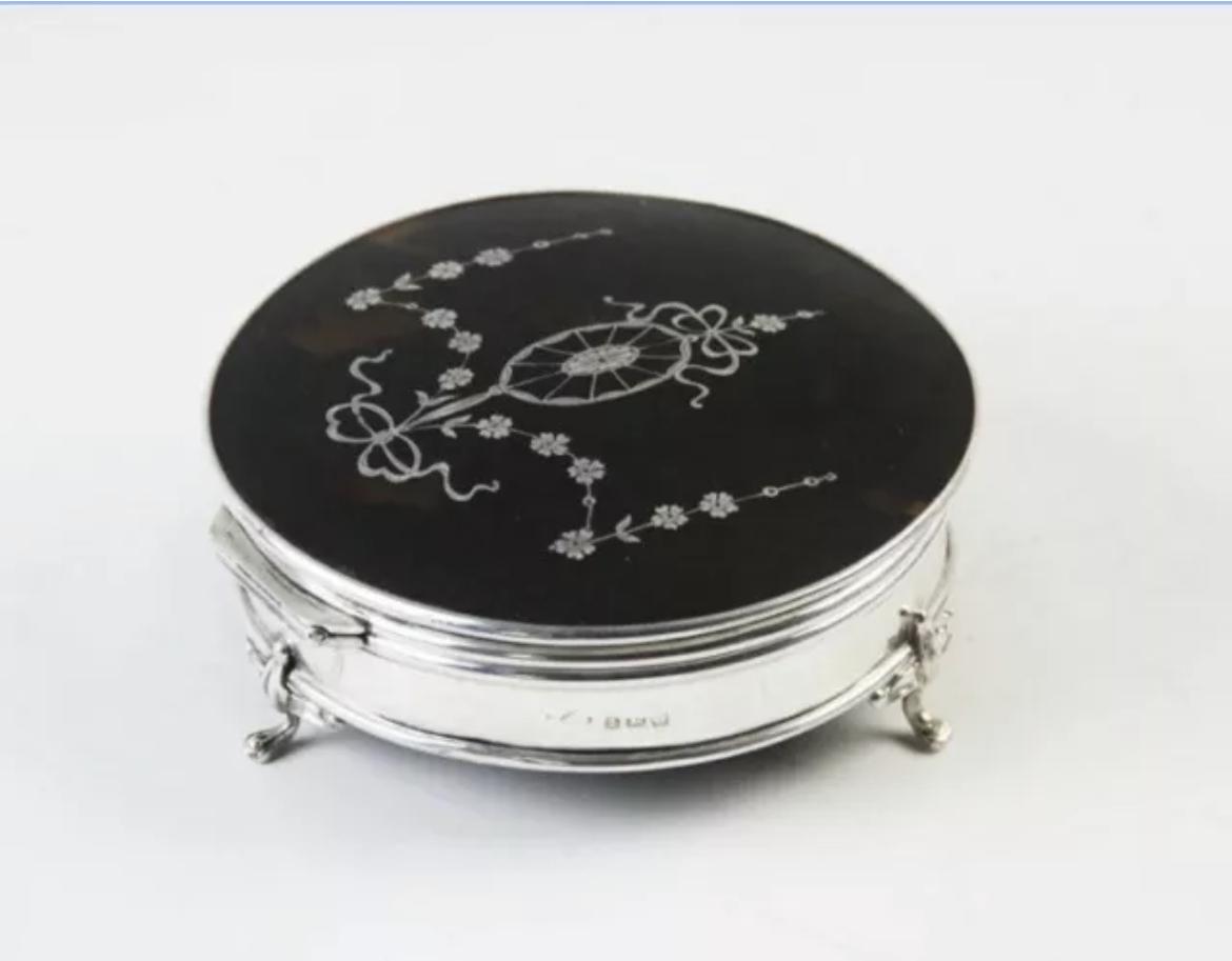 Silver Tortoiseshell Pique Work Dressing Table Casket. Birmingham A.B 1922