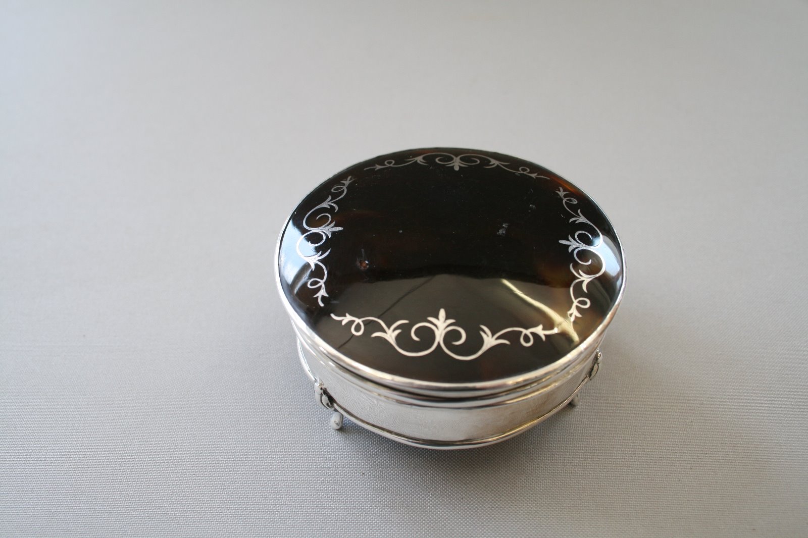 Silver Trinket Box with Tortoiseshell Lid (1 of 4)