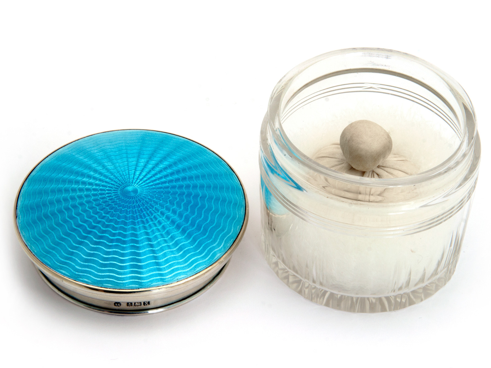 Silver & Turquoise Guilloche Enamel Lidded Glass Jar (1 of 1)