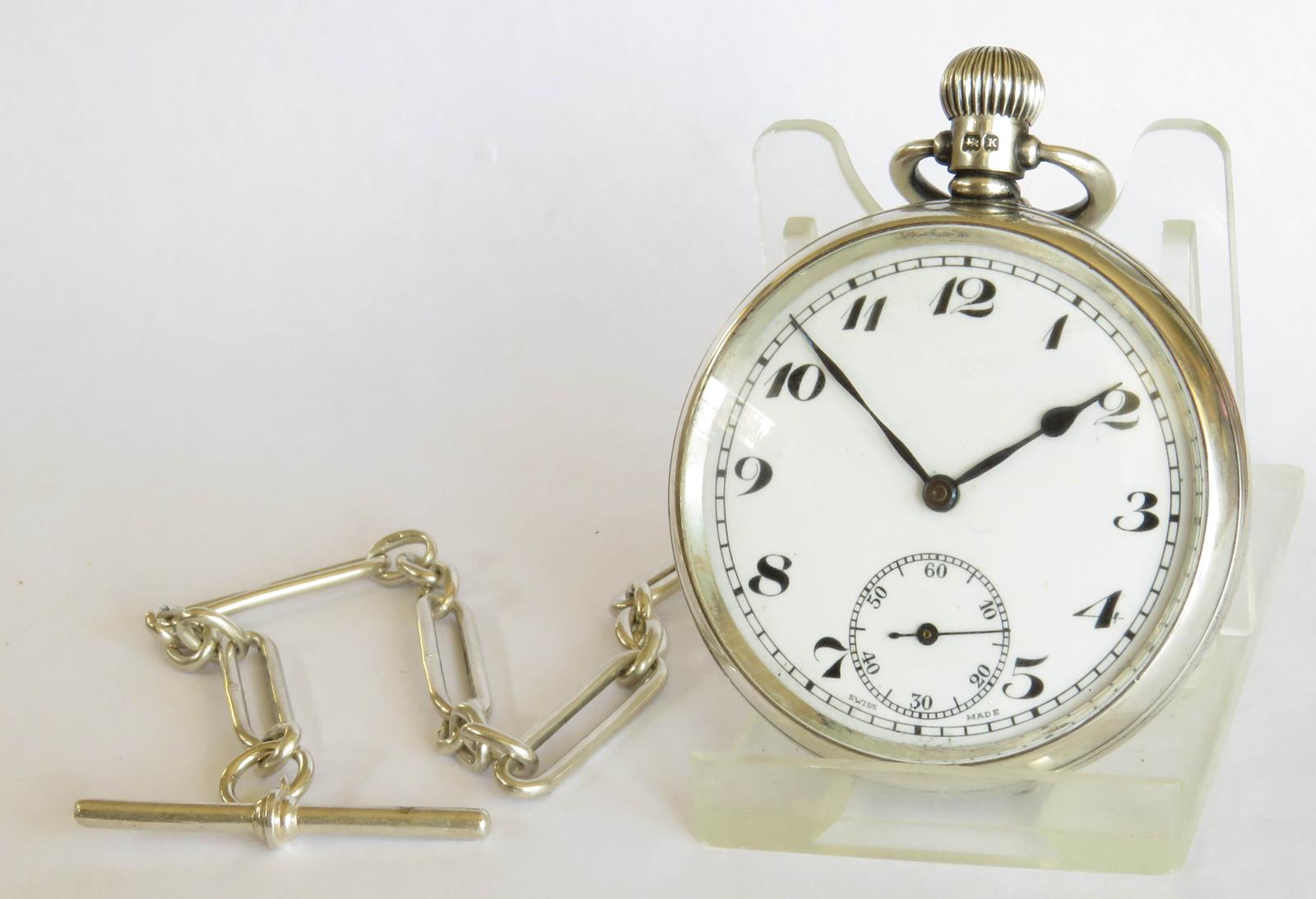 Silver Uno Pocket Watch & Chain