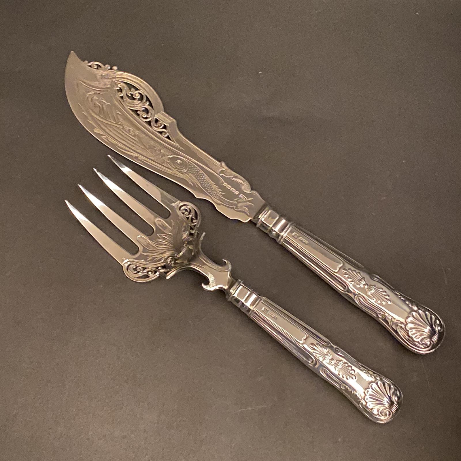 Silver Victorian George Unite Kings Pattern Fretwork Fish Servers