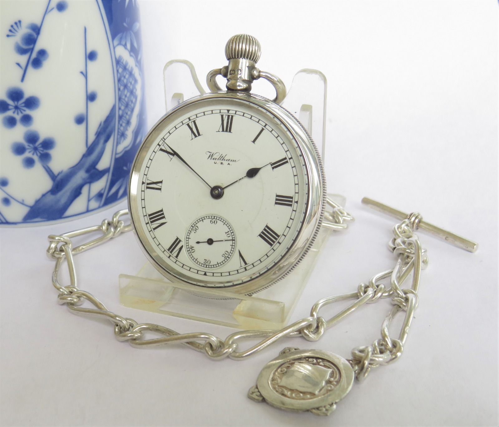 Silver Waltham Bartlett Pocket Watch & Chain 1924