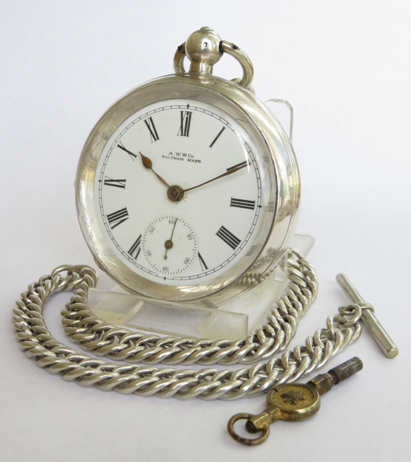 Silver Waltham Ellery Pocket Watch with Albert