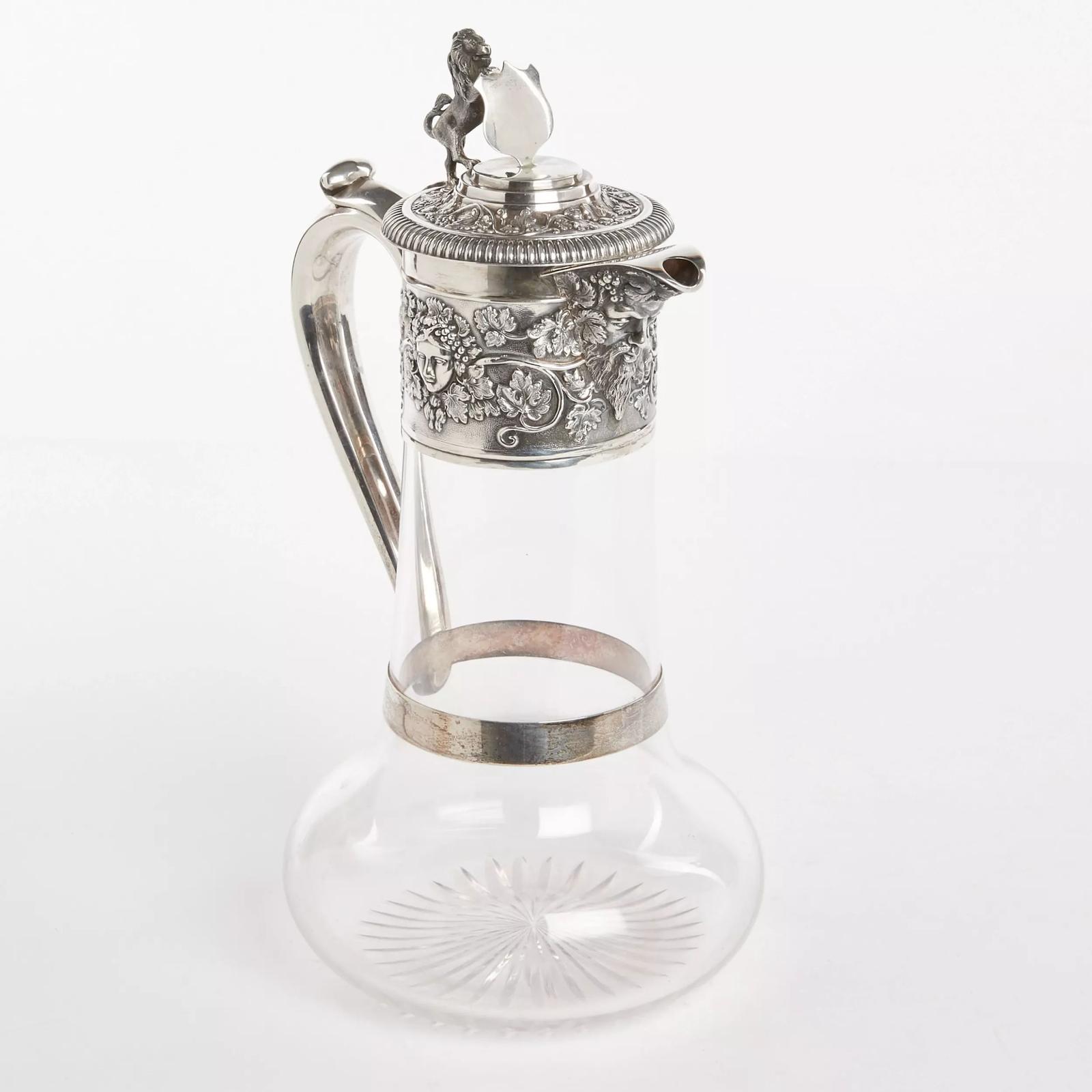Silver wine jug with glass. Horace Woodward & Hugh Taylor, London 1893.
