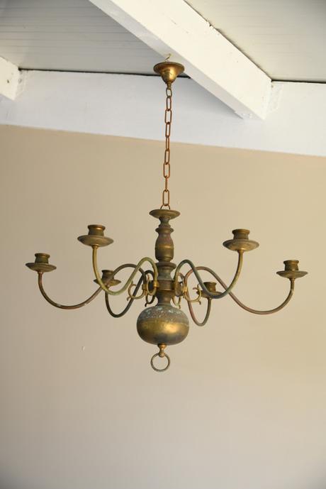 Single Dutch Style Brass 6 Arm Candle Chandelier