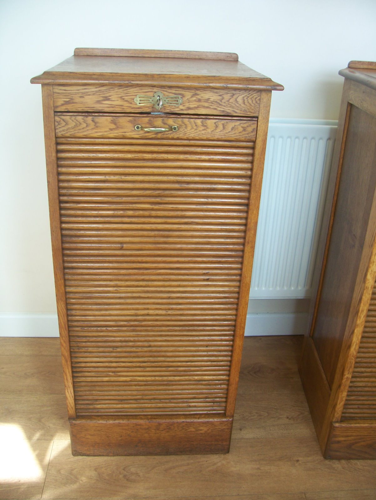 Single Edwardian Oak Filing Cabinet with Tambour Front and 9 Drawers (1 of 1)