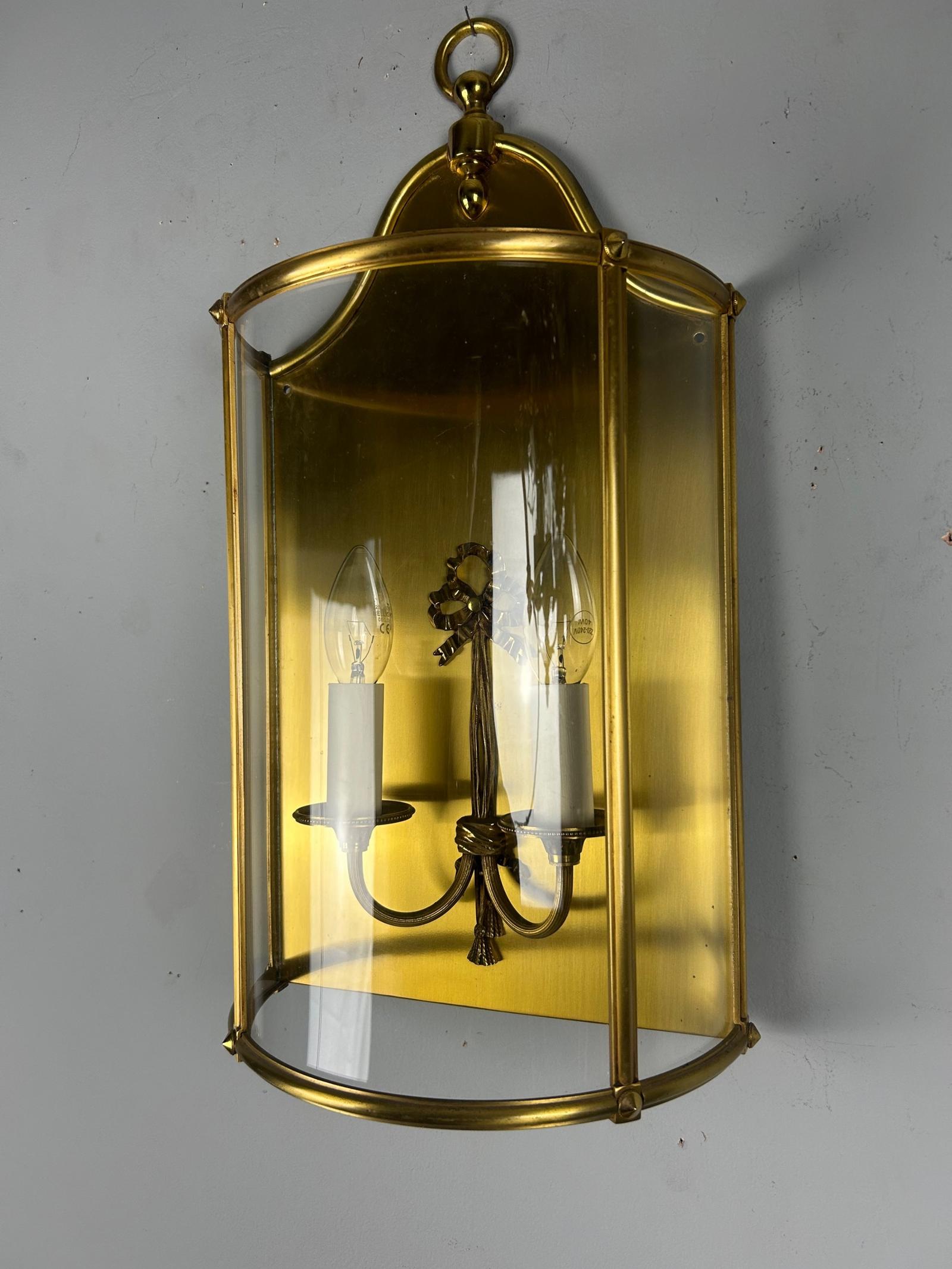 Single French Large Brass Convex Half Lantern Wall Light